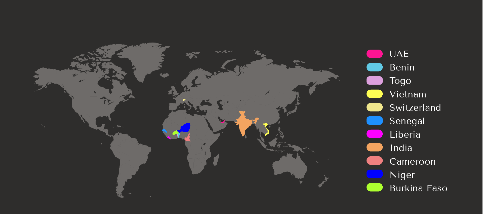 - Supplies to West African markets via trade partners in Singapore, UAE & Switzerland