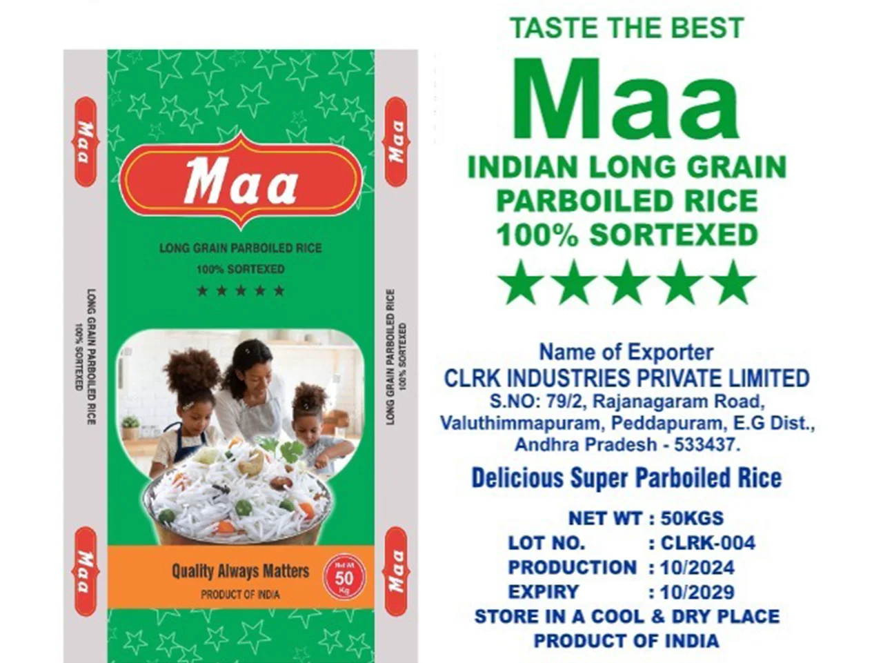 CLRK Industries Pvt. Ltd. is a leading Manufacturer & Exporter of finest quality of Non Basmati Rice and Non Pesticides Rice in India. Established in the year 2010 in Kakinada (port hub for rice vessels in India), Andra Pradesh, India, we are engaged in milling, processing & supply of finest qualities of Indian Rice in the form of Brown, White (Raw), Parboiled to our prestigious clients worldwide.